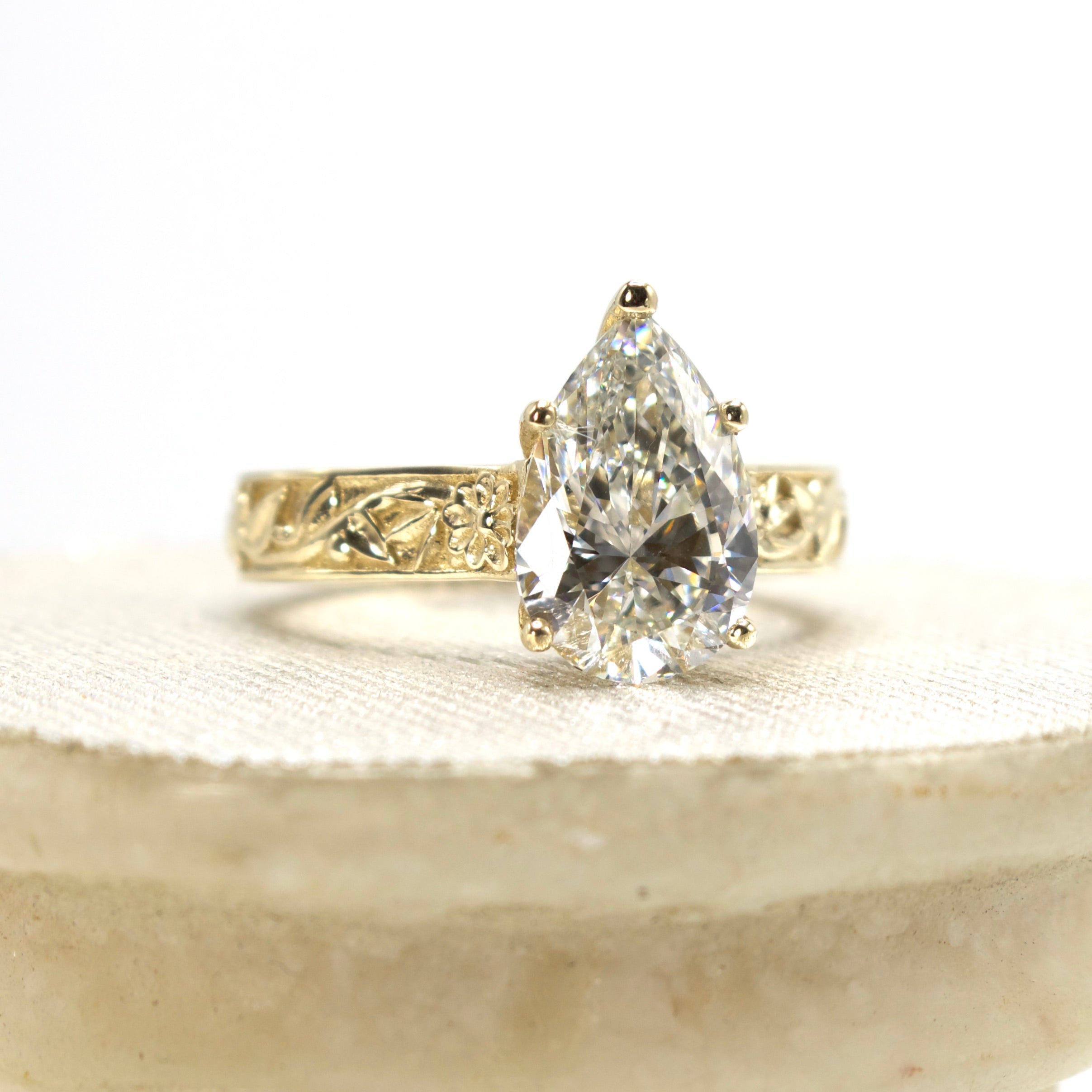 We have dozens of designs unique to our store that are made from molds of antique and vintage mountings. The vast majority of original Art Deco rings are in a white metal — but having control over the casting process gives us the opportunity to add a modern spin to an old design by remaking them in yellow or rose gold.