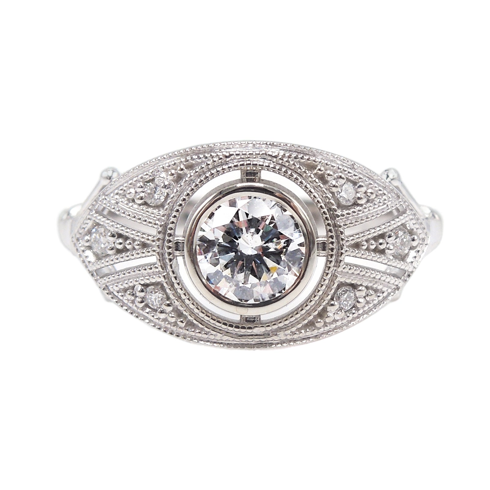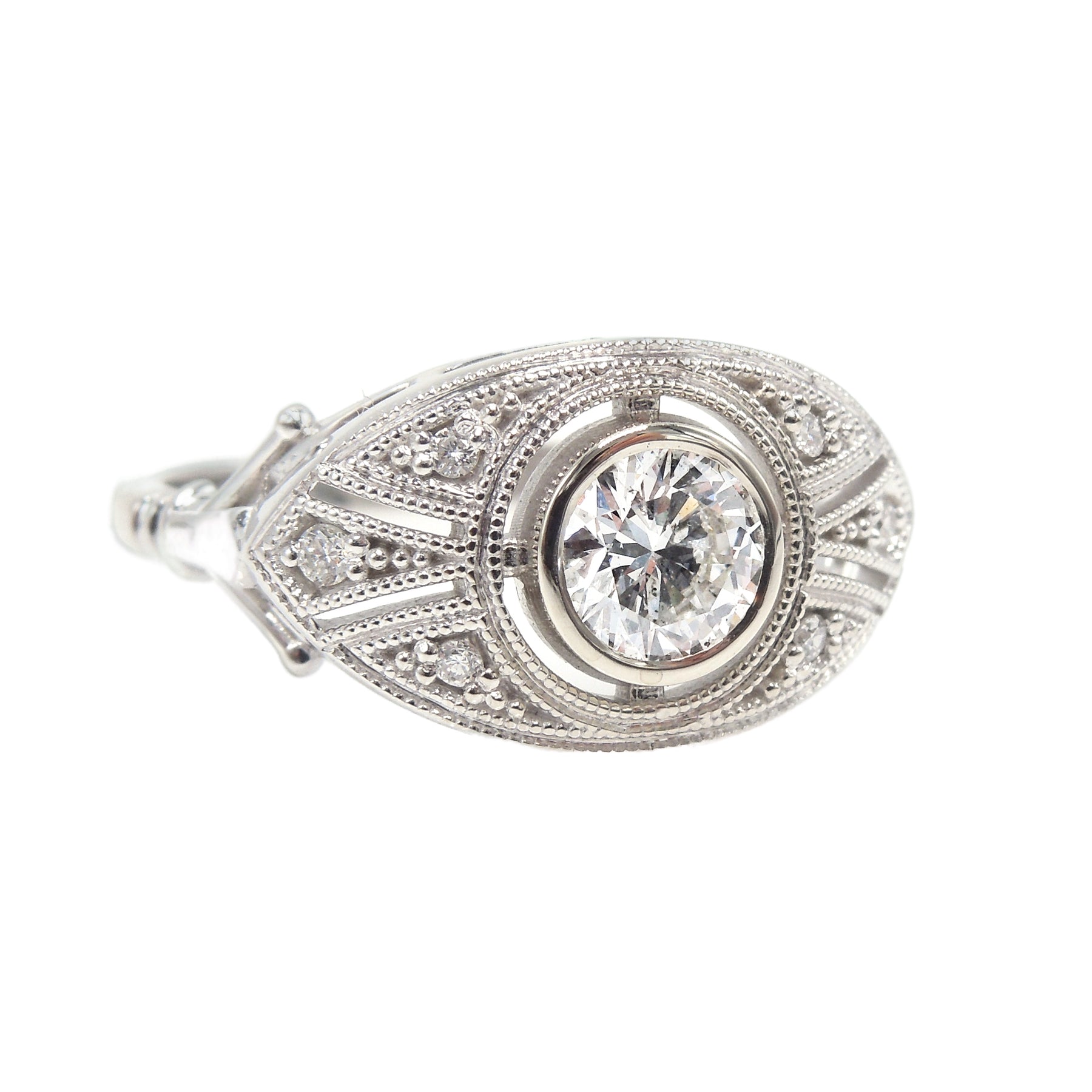 Almond Shaped Art Deco Style Engagement Ring with Half Carat Bezel Set Diamond