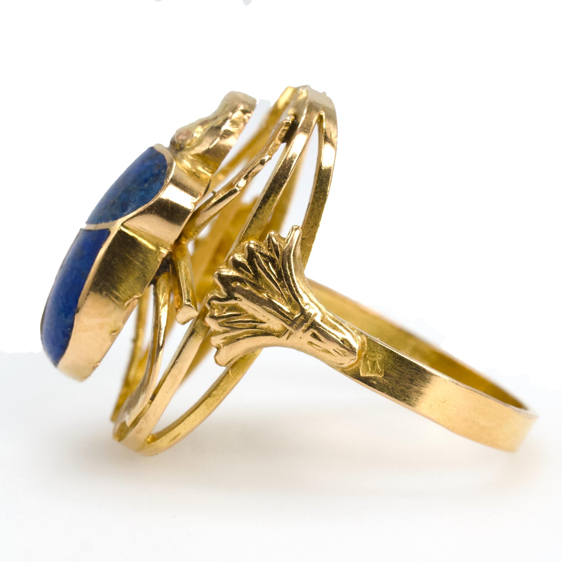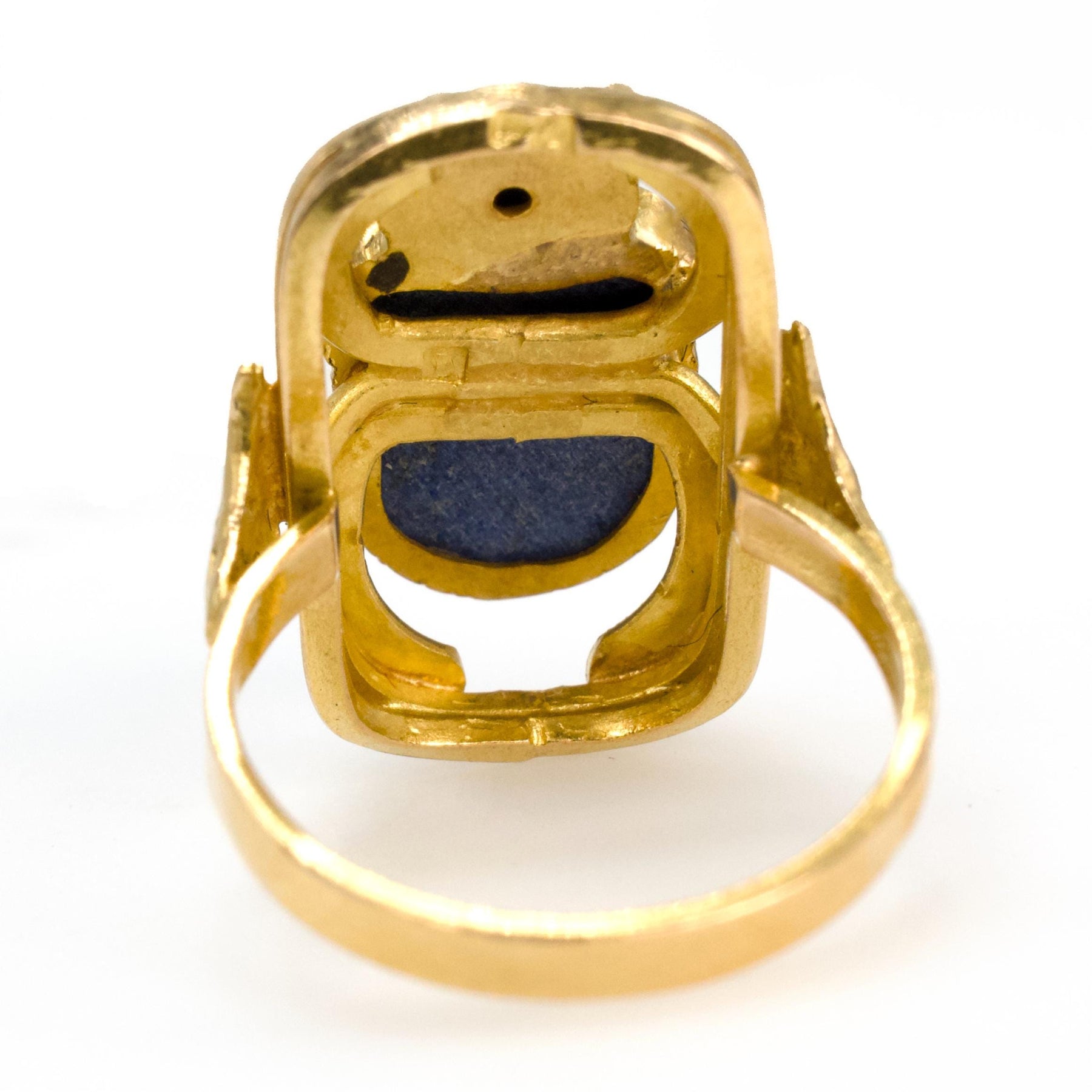Egyptian Inspired 18K Yellow Gold and Lapis Lazuli Scarab Ring