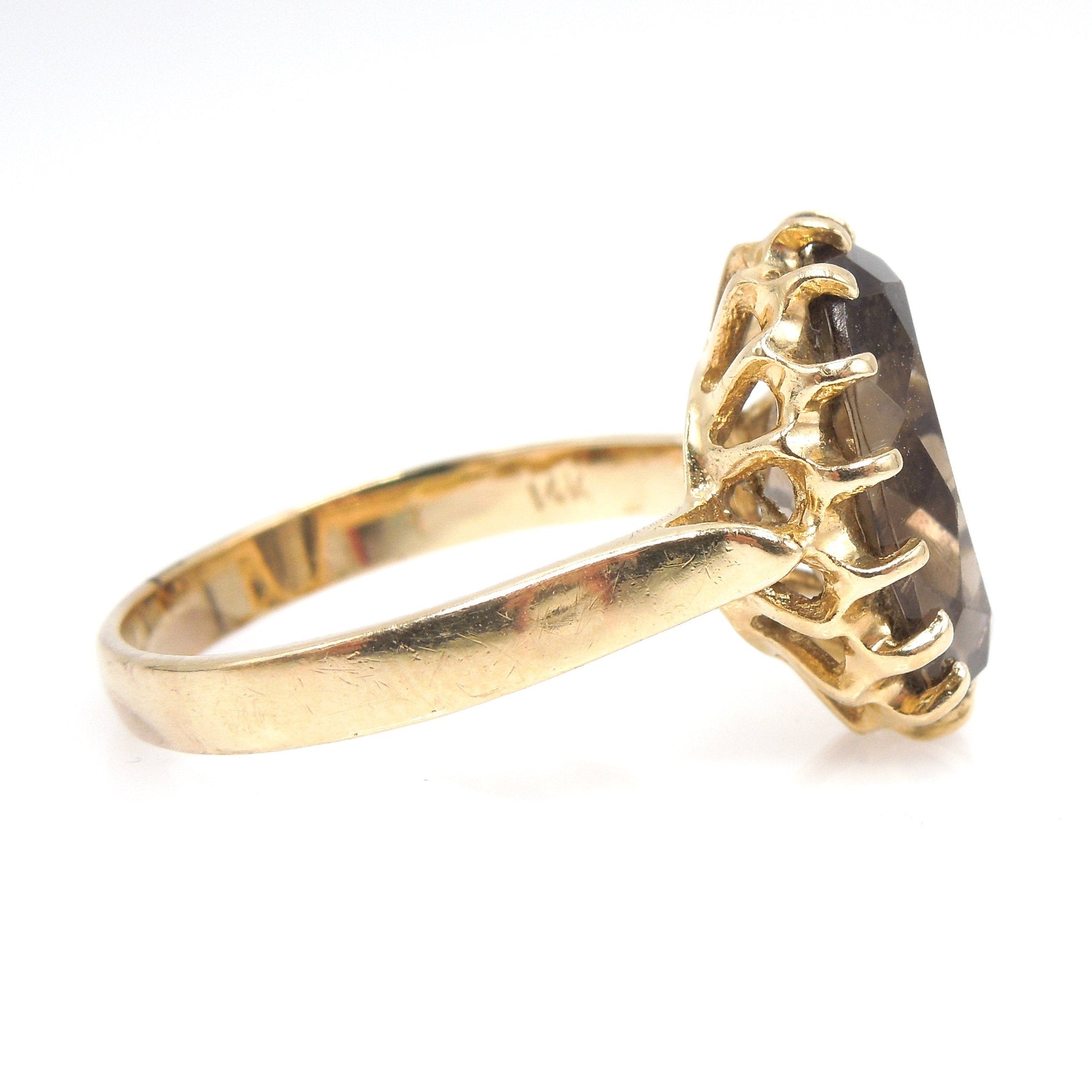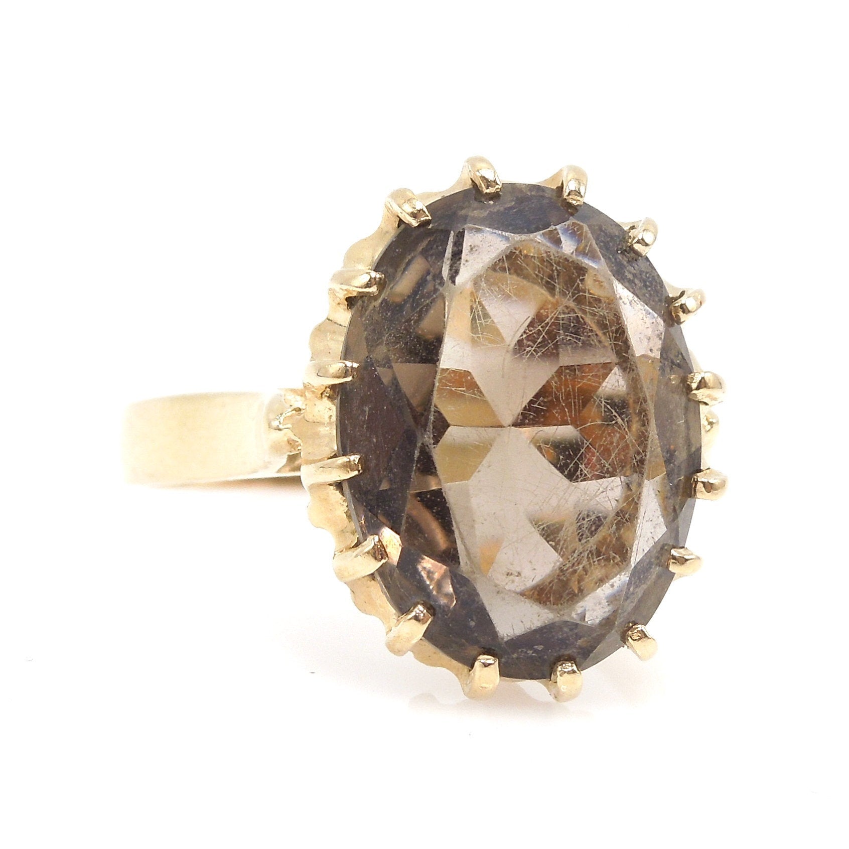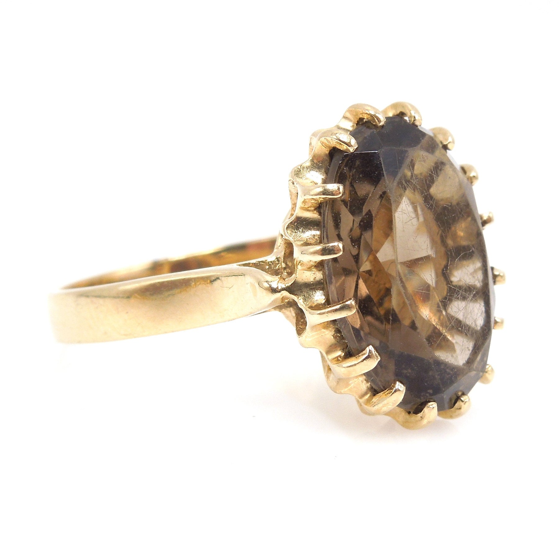 Estate Oval Smoky Quartz Cocktail Ring in 14K Yellow Gold