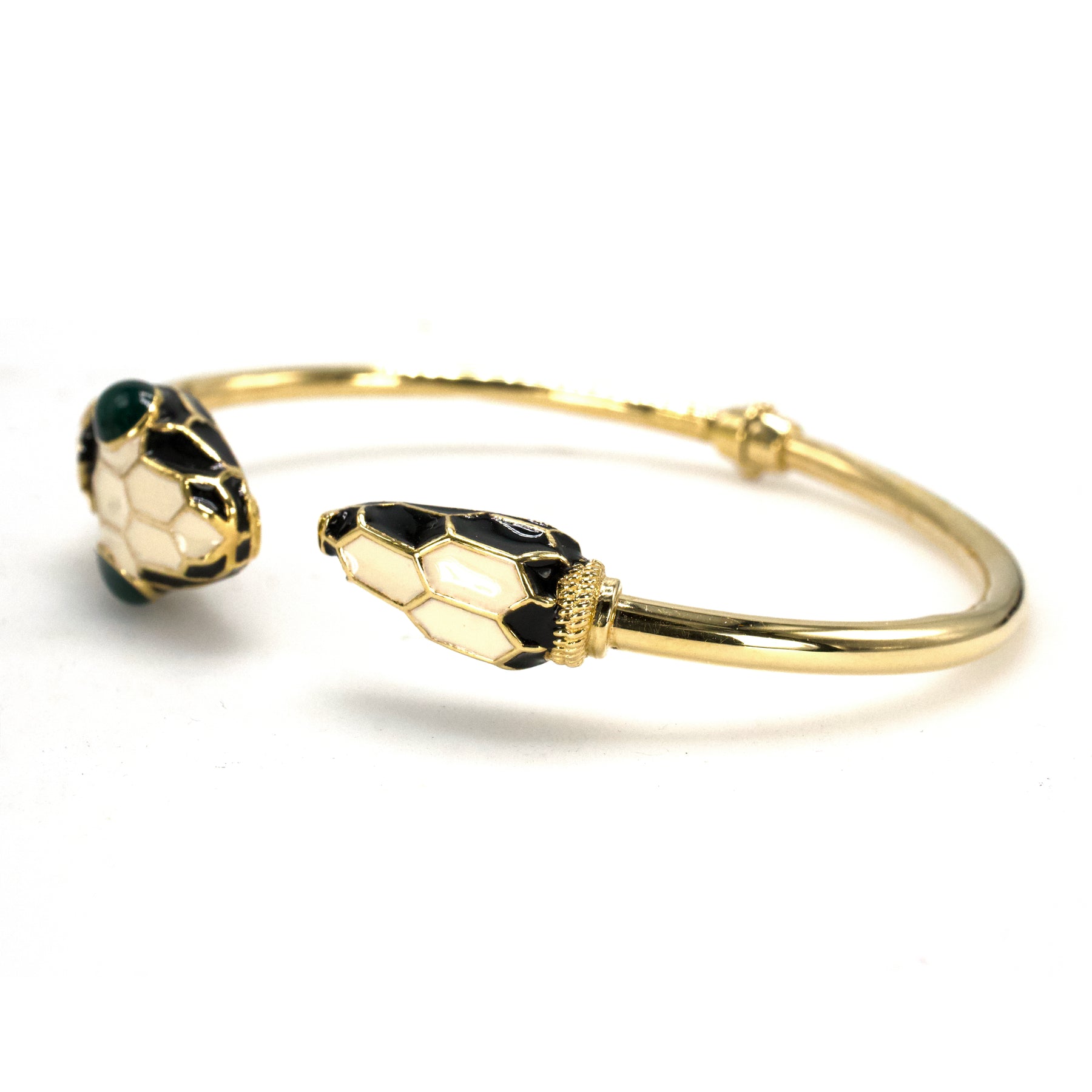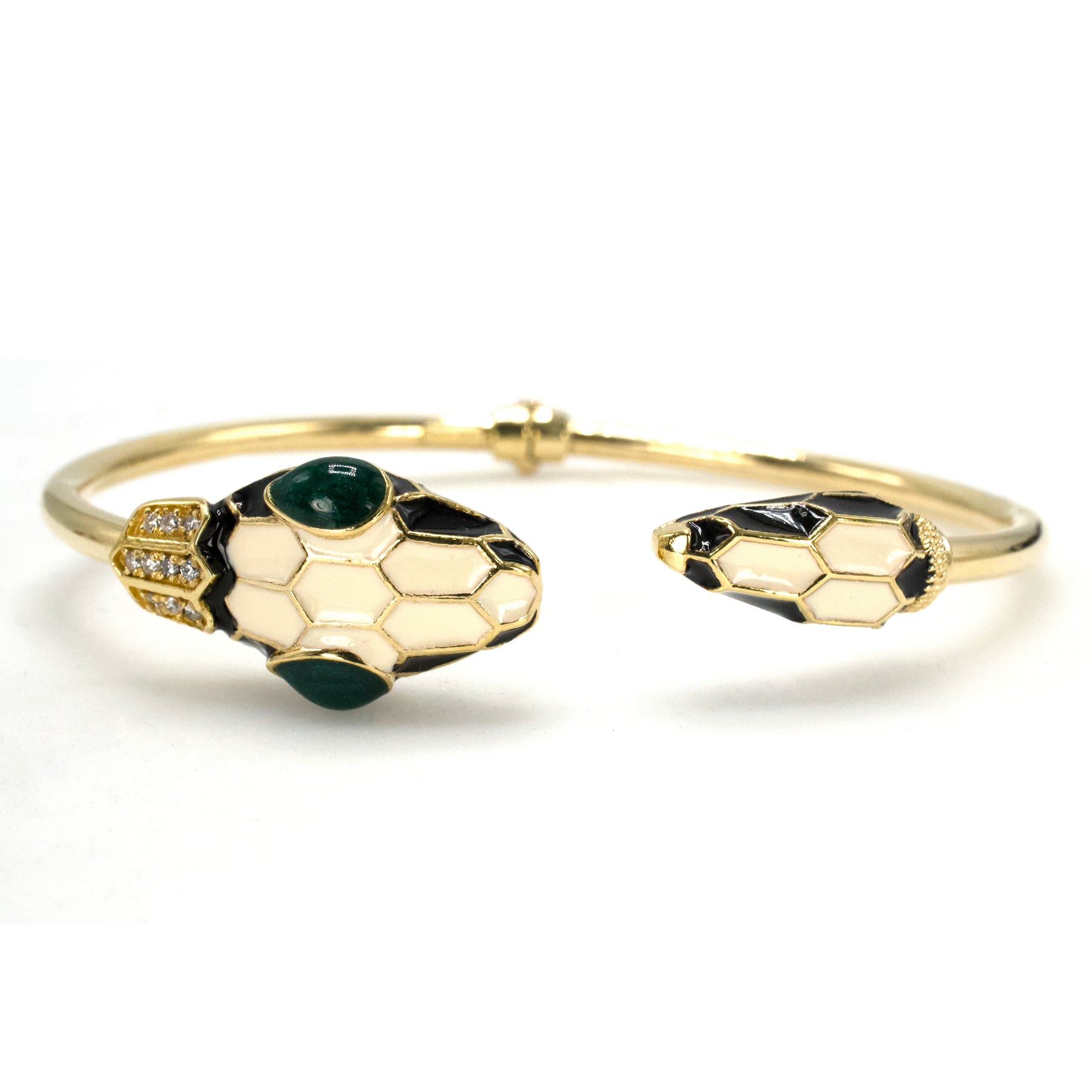 Italian 14K Yellow Gold, Enamel, and Diamond Hinged Snake Bangle