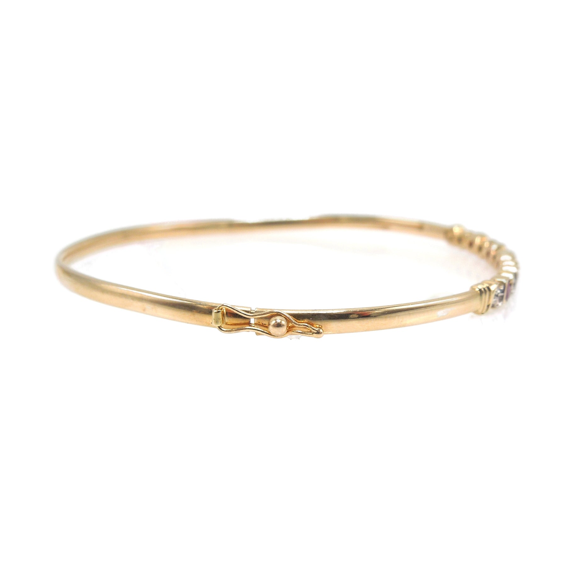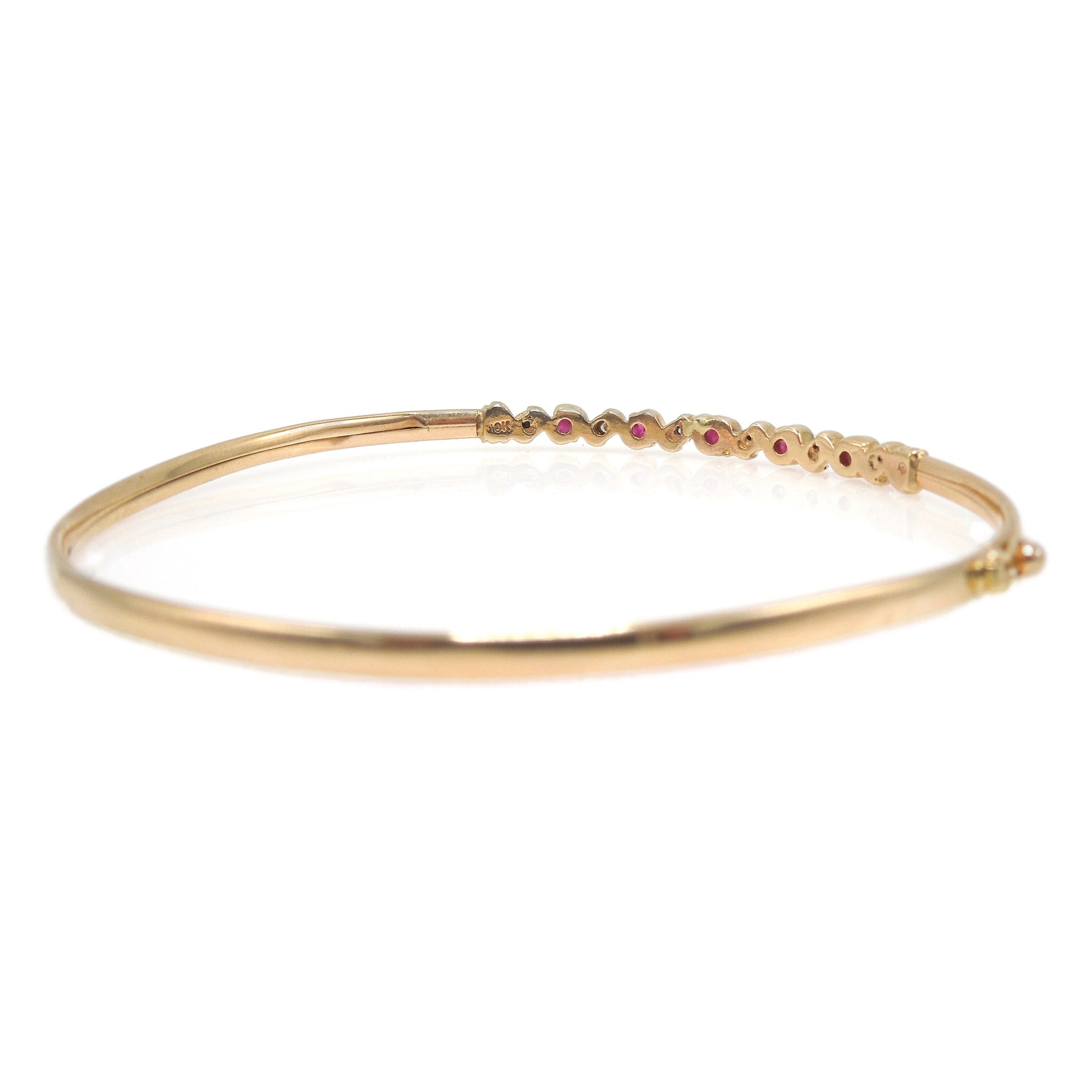 Narrow Yellow Gold Diamond and Ruby Bangle Bracelet