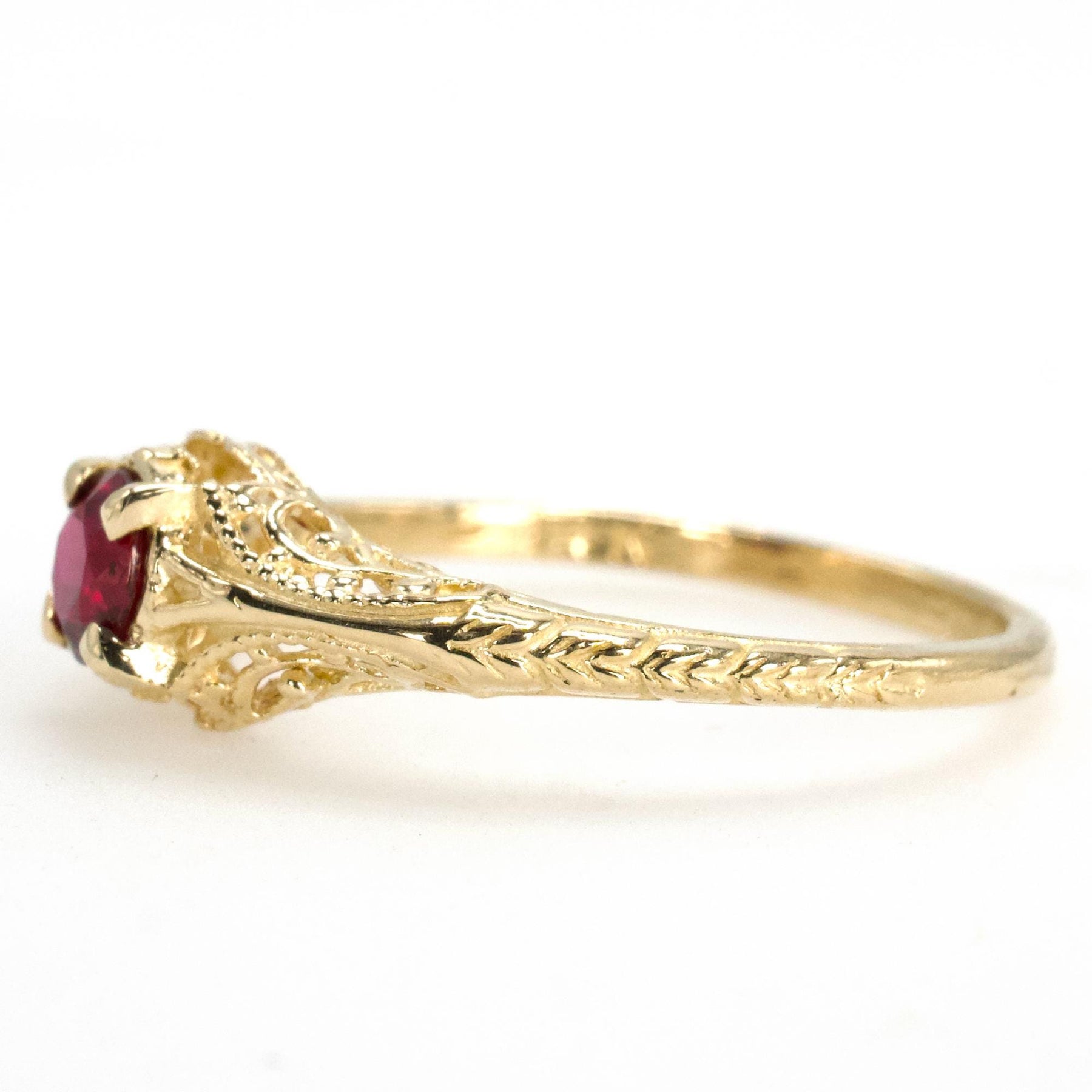 Whether you're seeking a nontraditional engagement ring, anniversary gift, or birthday present for a ruby lover (or July baby!), there is so much to love about this delicate antique inspired piece.