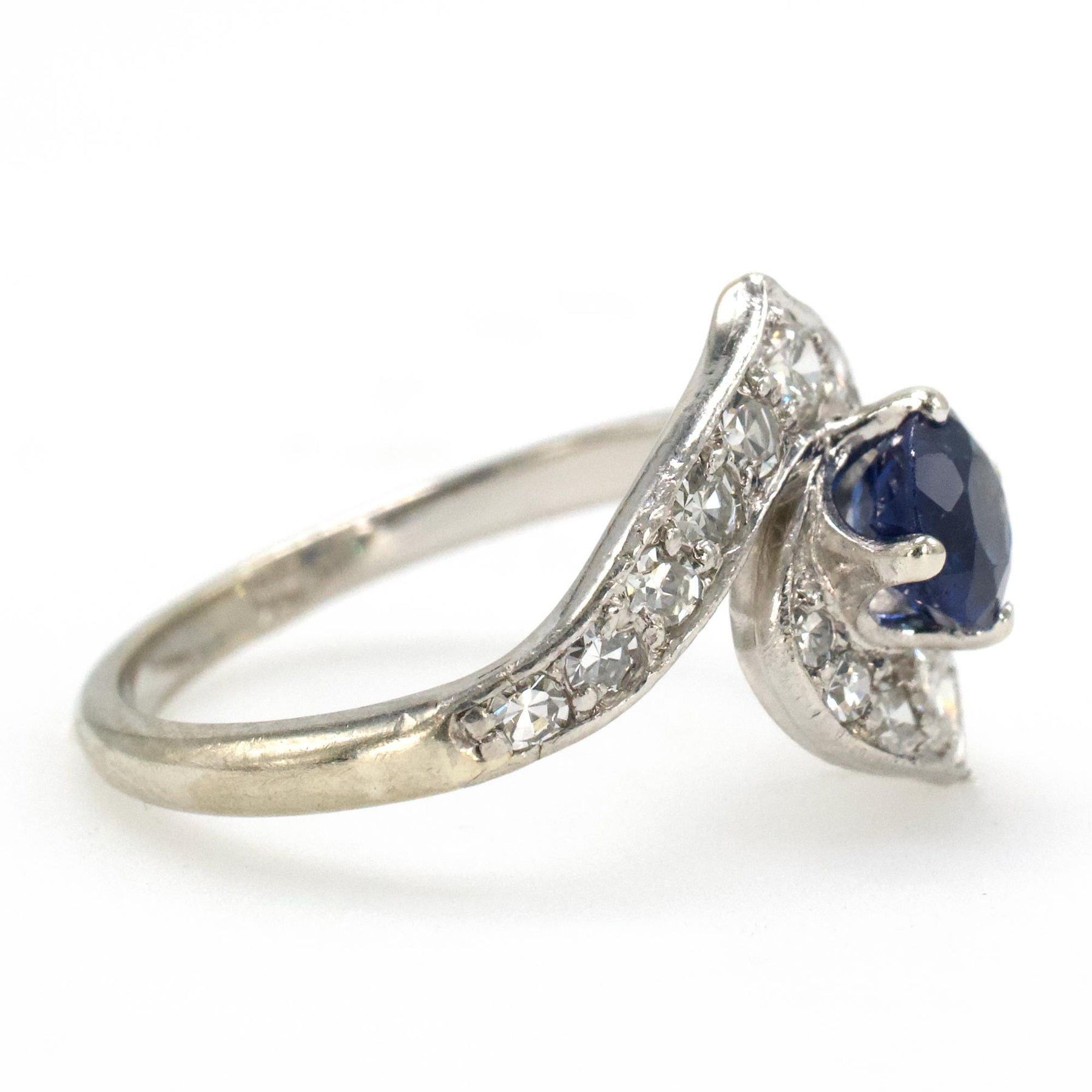 Vintage Sapphire and Single Cut Diamond Bypass Ring