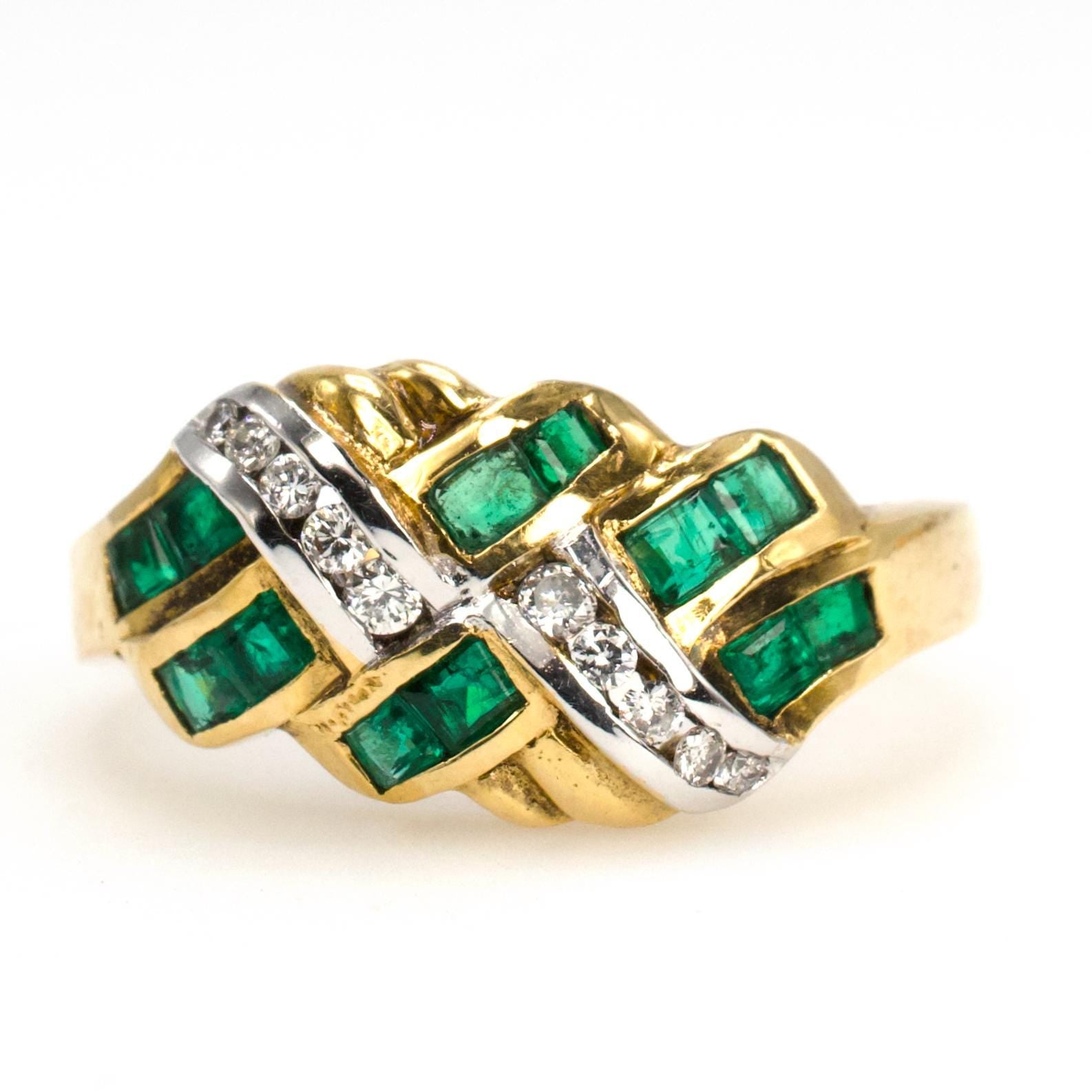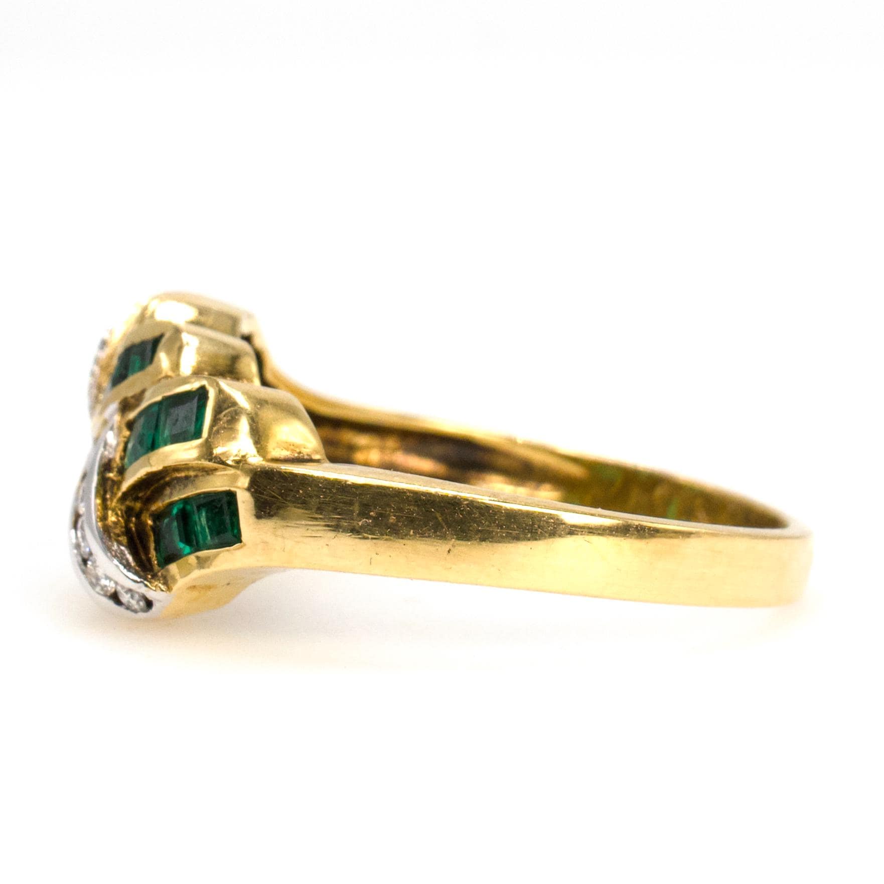 Wide Twisted Emerald and Diamond Band in 18K Yellow Gold